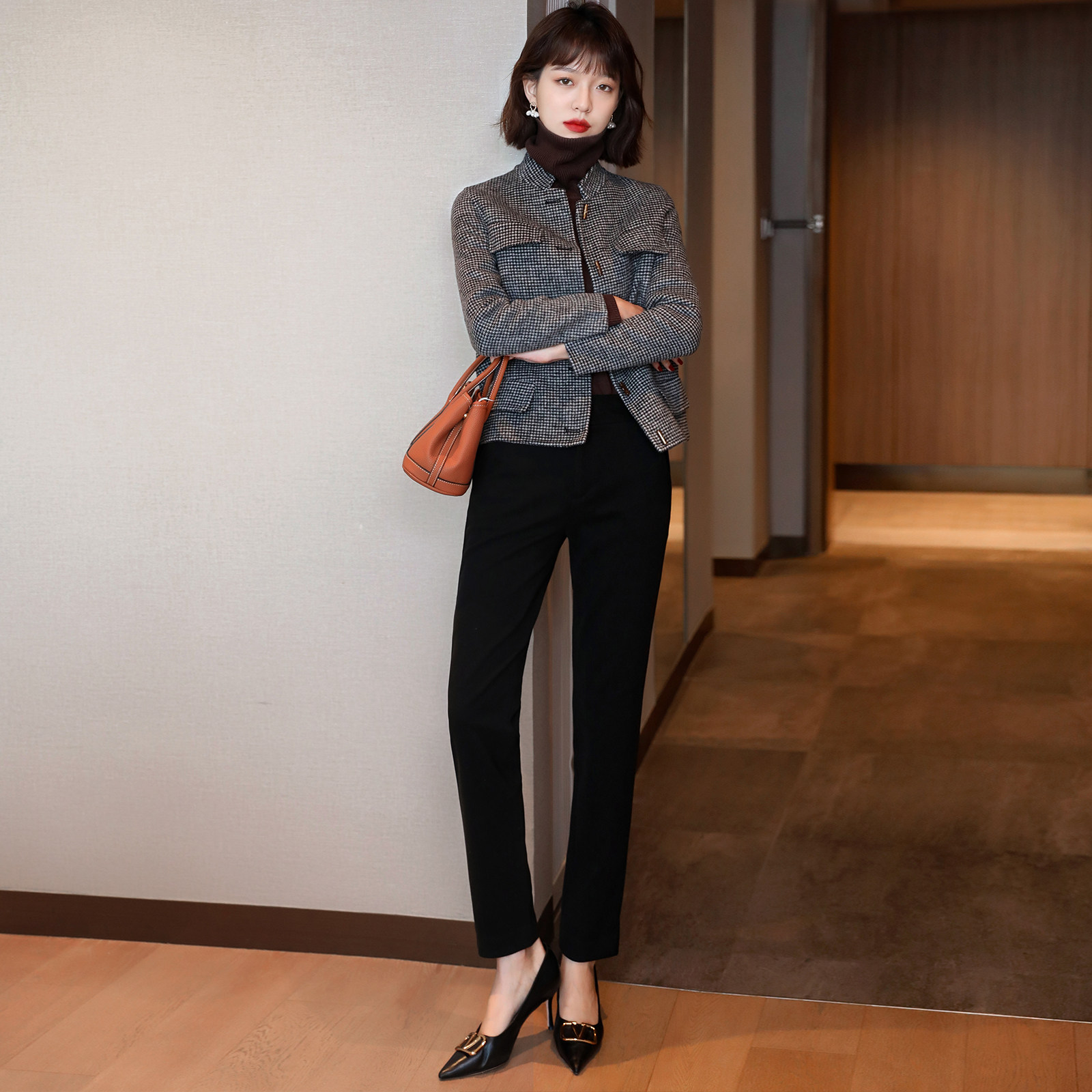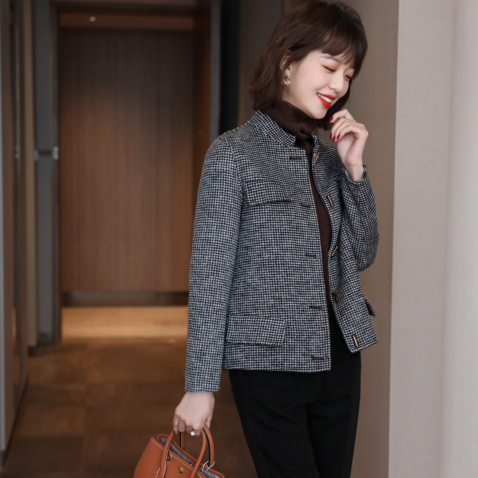 Touch feeling soft glutinous fine ~ 2022 autumn and winter commute 100 lap dresses for thousands of birds Gpop cashmere wool coats women