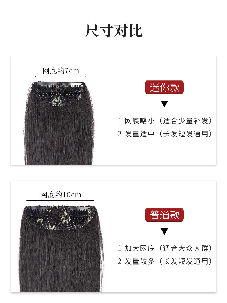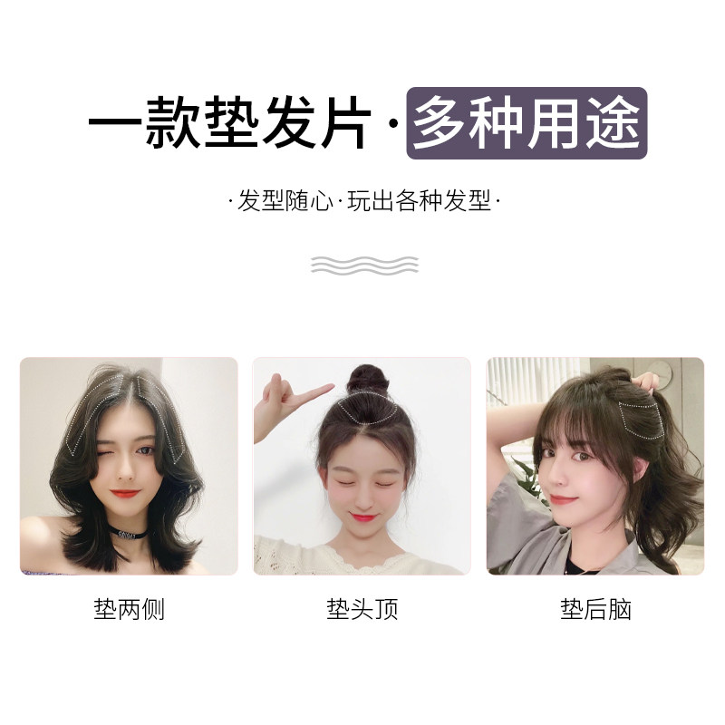 Wig pad thickened on both sides of the hair root on the top of the head hair replacement female one-piece invisible seamless real hair pure hand-woven pad hair piece