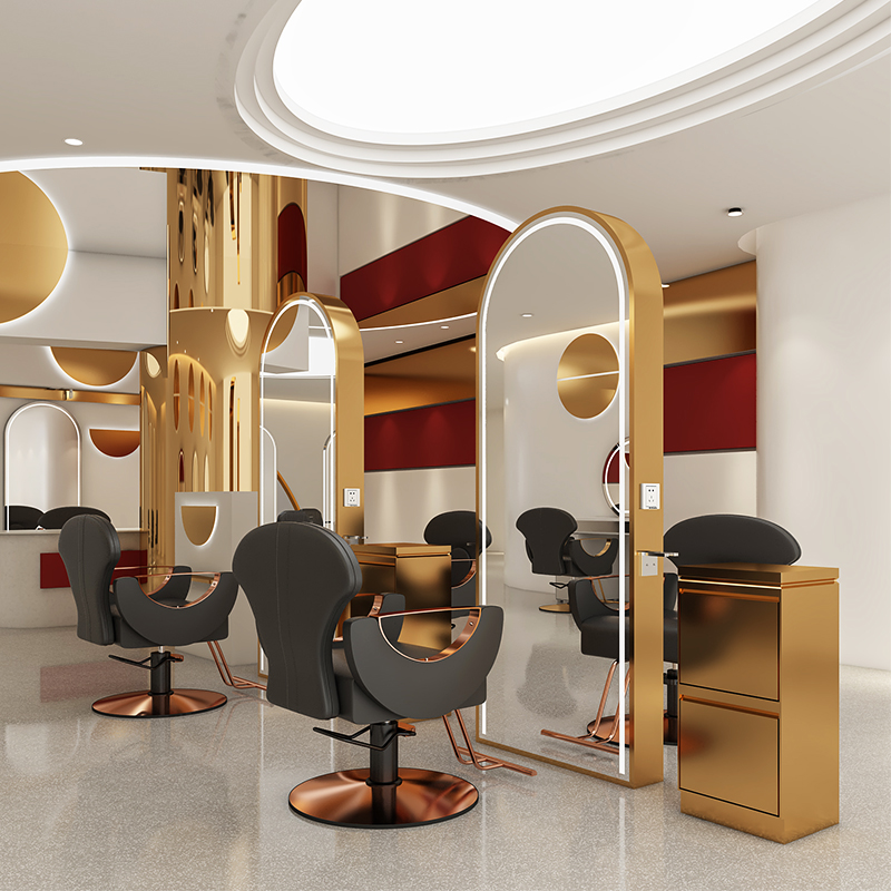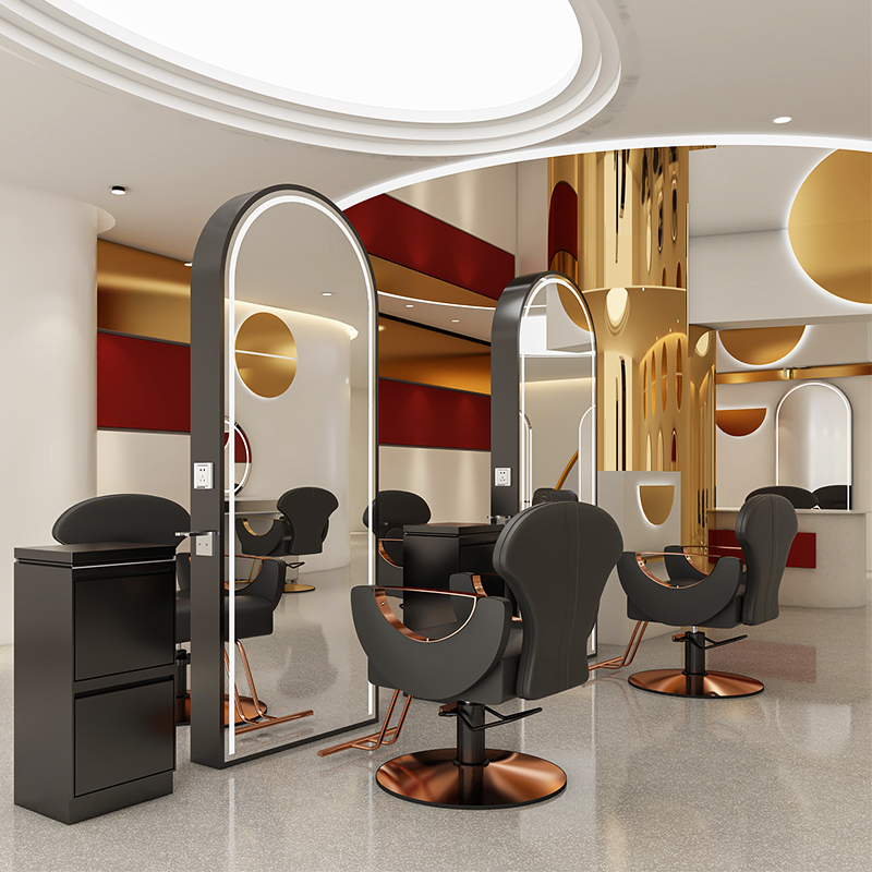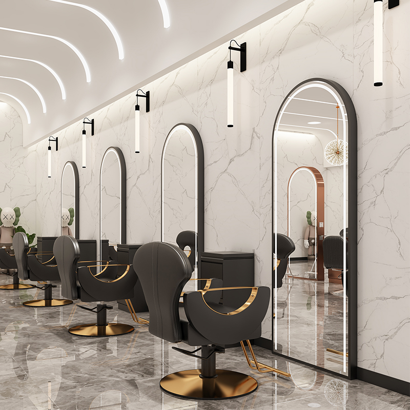 Net red perm area barber mirror hair salon special trend model simple double-sided vertical semi-circular floor-to-ceiling hair salon mirror table