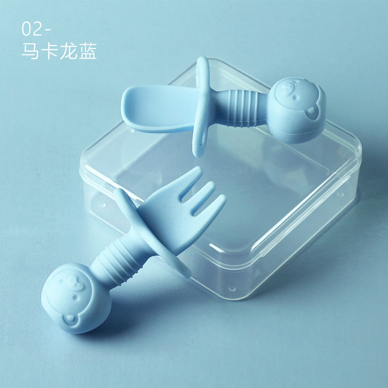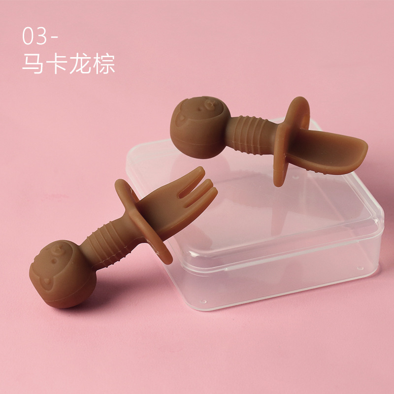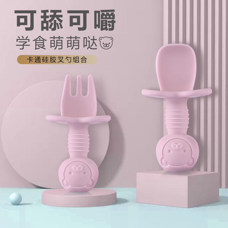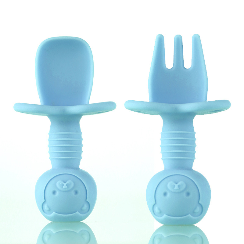Baby training gripping fork spoons Silicone Soft Fork Spoon Children Deputy Food Tablespoon Fork Cartoon Short Handle Fork Spoon Baby Spoon