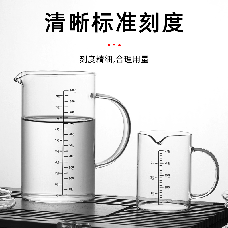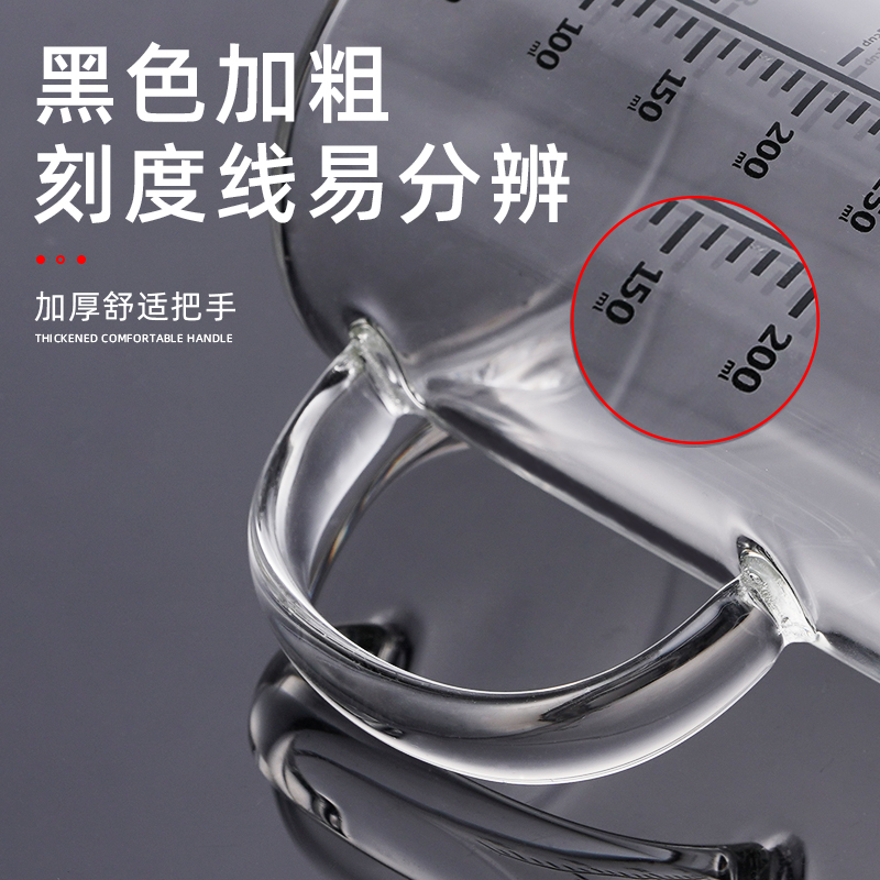 Measuring cup with scale kitchen baking household heat-resistant ml glass cup water cup with handle baby milk microwave oven
