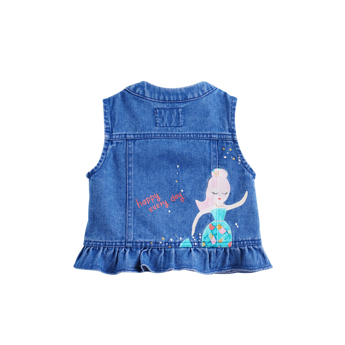 Mark Jenny Baby Spring Dress Girl Fun Mermaid Print Denim Waistcoat Child Vest 210017