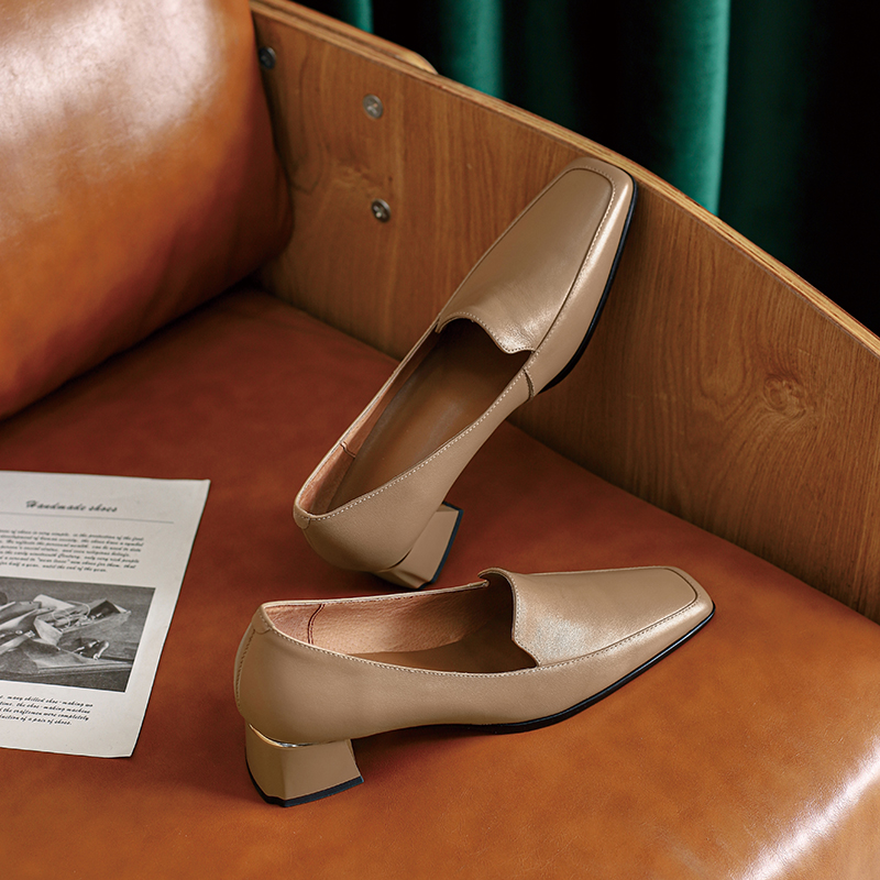 High Heel Lefu Shoes Woman 2021 Chunqiu One Foot Pedal Women's Shoes Coarse Heel heel Heel Wrap Shoes Yinglen Little Leather Shoes