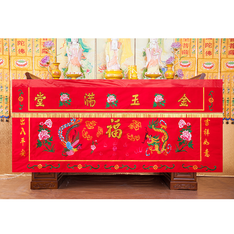 Buddhist Embroidered Table Surround Golden Jade Full of red velvety Bong Fuchong Fuchengfu Calligraphy Buddha's Festive Affair