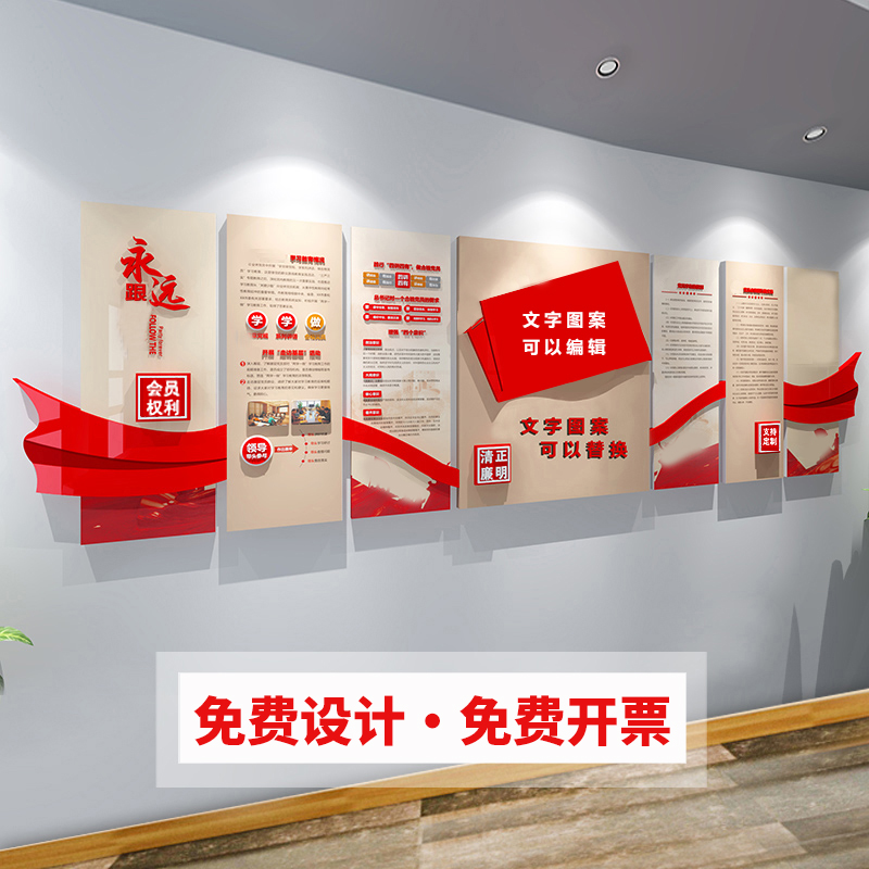 Party building activity room cultural wall material decoration design party branch conference room party member theme wall background wall customization