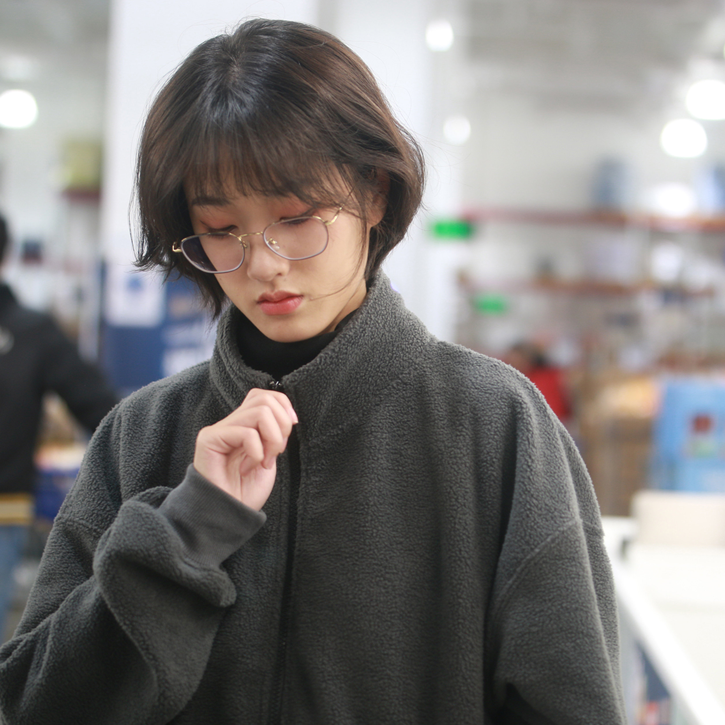 CARRYON 23AW day family fluff embroidered lamb suede jacket loose pure color lovers coat man boomer card-Taobao