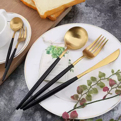 Black gold matte (steak knife) black Golden Matt (fork) black Golden Matt (table spoon) black Golden Matt (medium spoon) black Golden Matt (medium fork) black Golden Matte (three teeth)