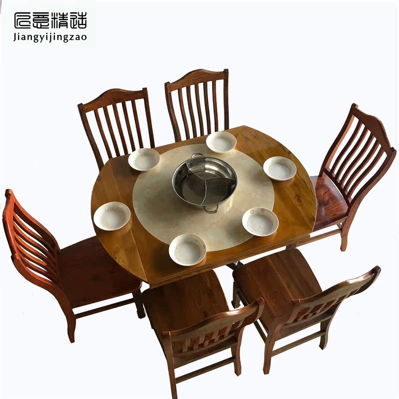 Craftsmanship refined multi-functional original solid wood with turntable induction cooker warming function can be square and round deformation metal foot dining table