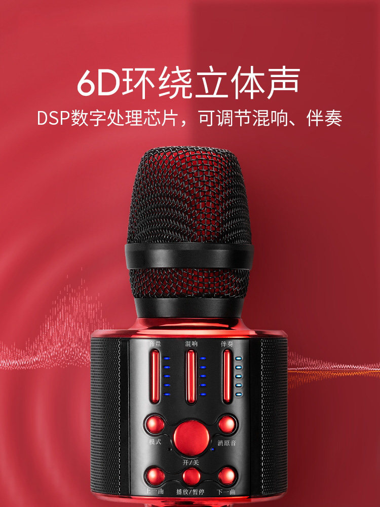 Microphone microphone audio one national K song artifact home TV KTV dedicated mobile phone wireless bluetooth vibrato live singing recording comes with sound card children's karaoke general