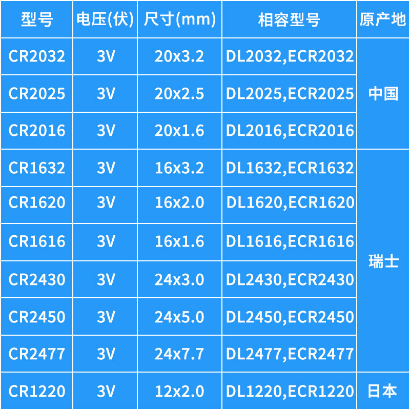 CR2032-2 CR2032-2 CR2025-2 CR2025-2 grain CR2016-2 grain CR1025-2 CR1216-2 grain CR1220-2 grain CR1220-2 grain CR1220-2 grain