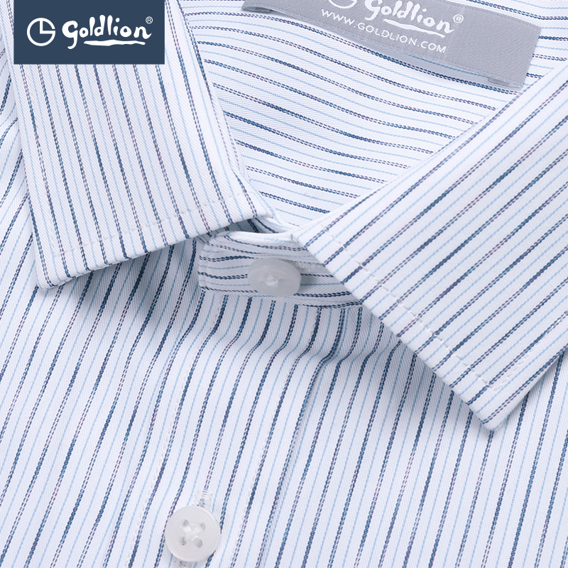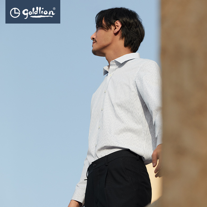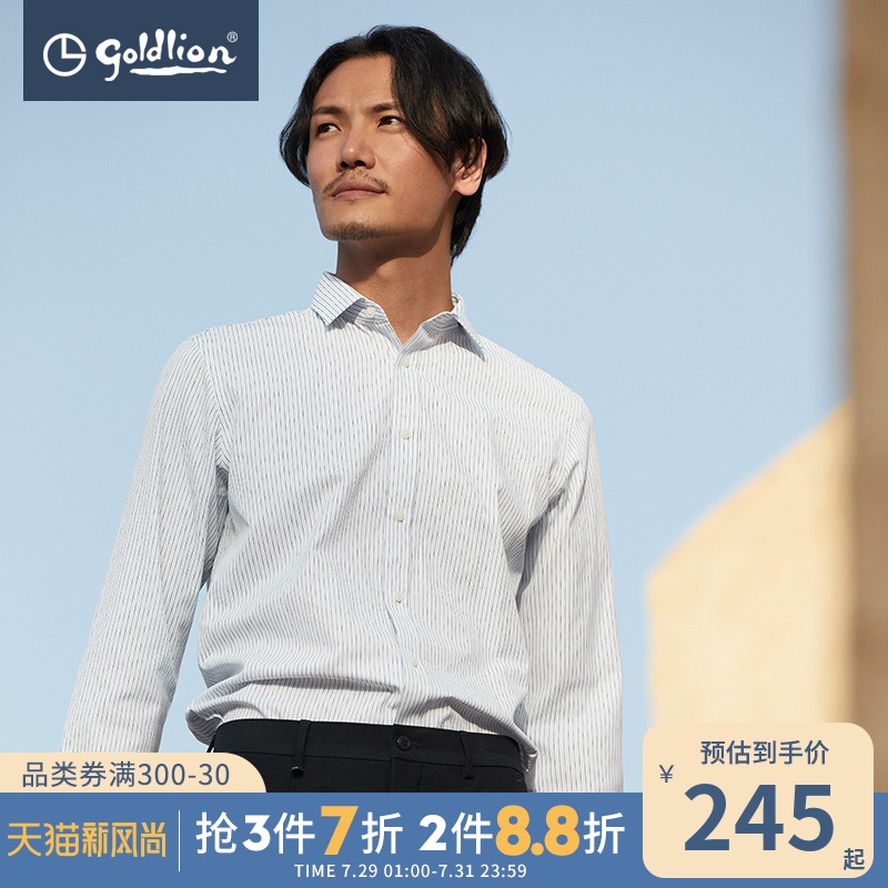 Jinlilai autumn new men's gradient contrast stripe slim version business shirt men's long-sleeved (Hui)