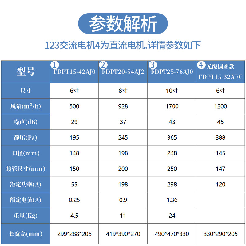 6 inches 150P Air volume 1 2 0 0 m ³ h Promise throttling 6 inches 150P Air volume 5 0 0 m ³ h Double speed 8 inch 200P Air volume 9 2 8 m ³ h Double speed