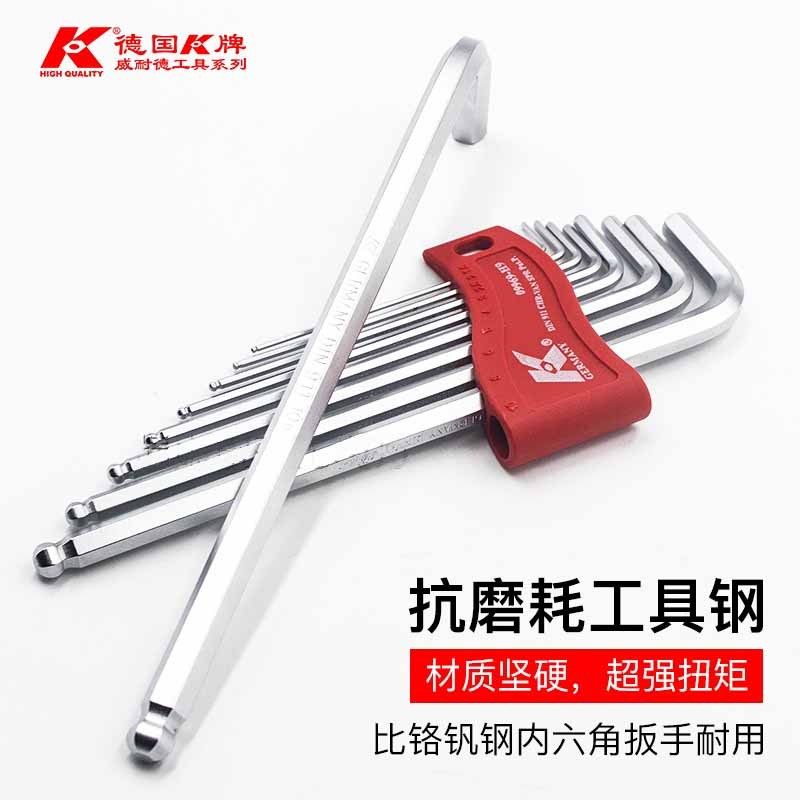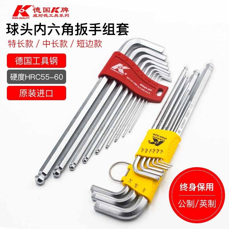 German K brand imported hexagonal wrench set lengthened ball head hexagonal tool short head torque wrench combination
