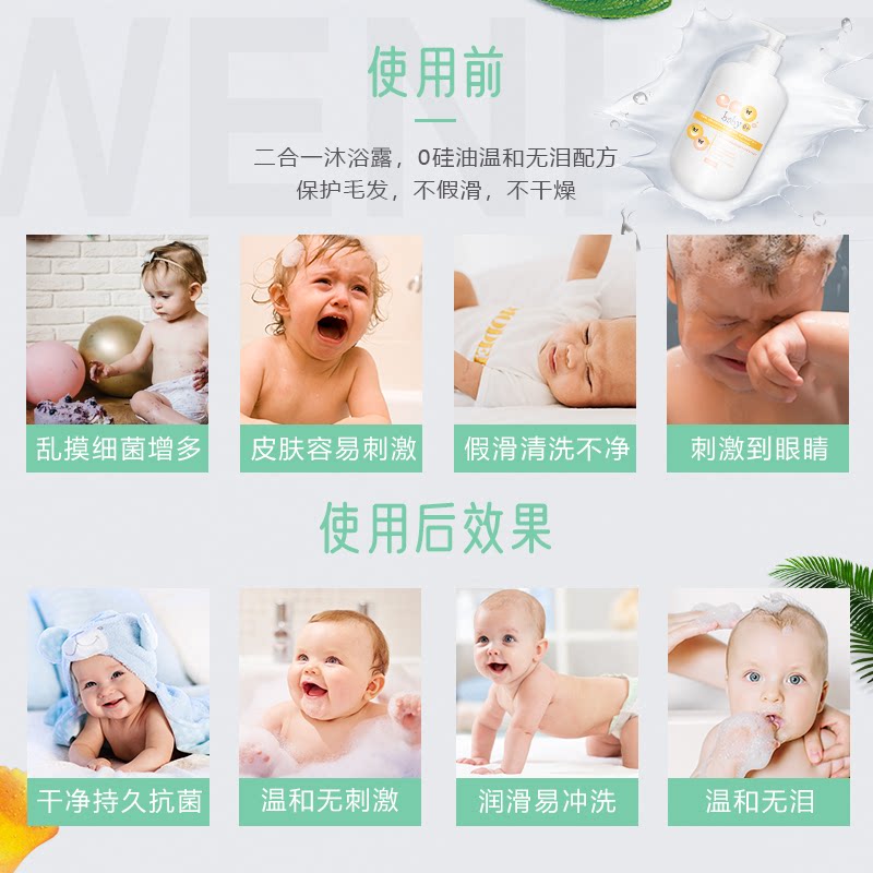 ecobaby 0 to 3 years old infant shampoo bath two-in-one newborn baby no tears washing lotion bubble