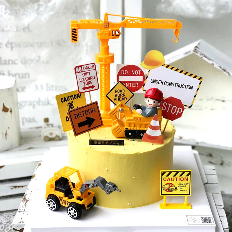 Children's construction vehicle excavator boy decoration decoration excavator loader tower crane birthday cake plug-in