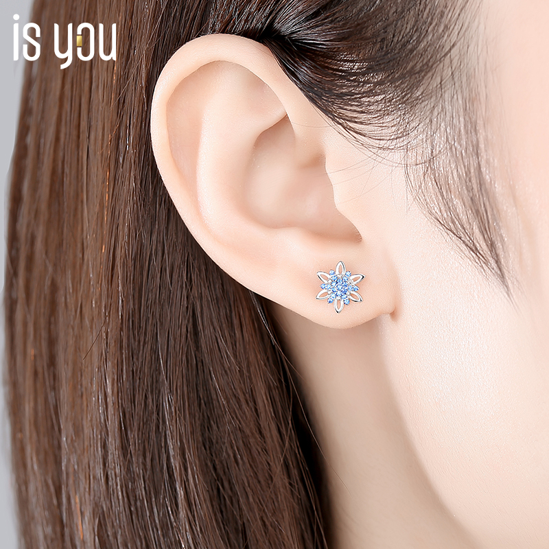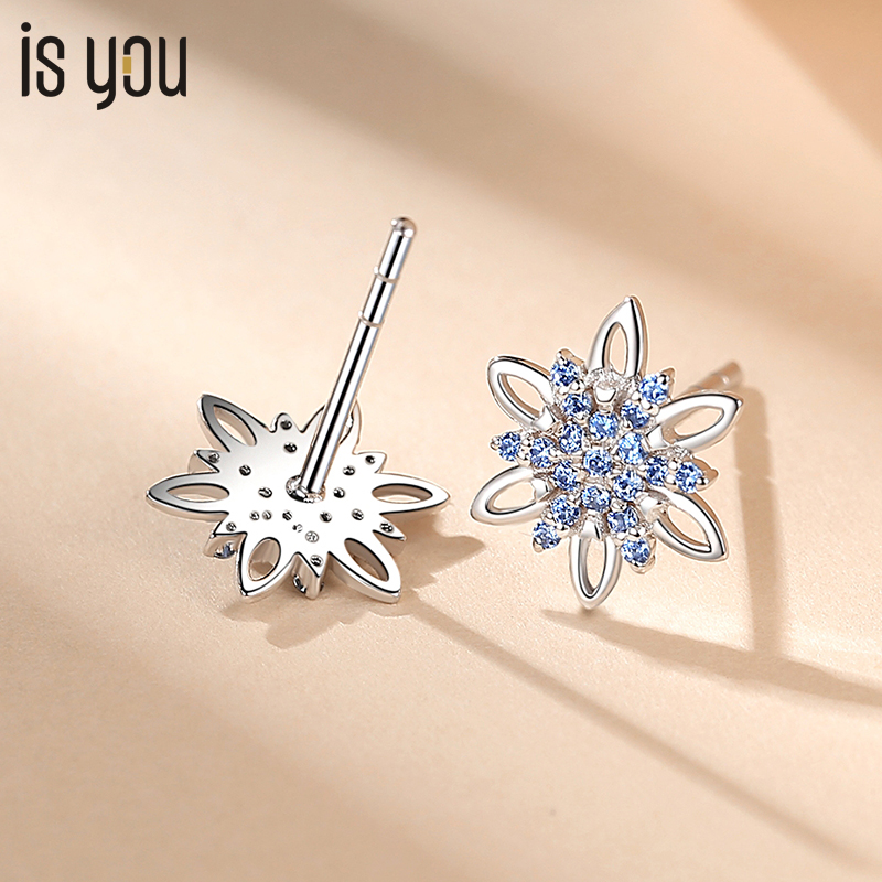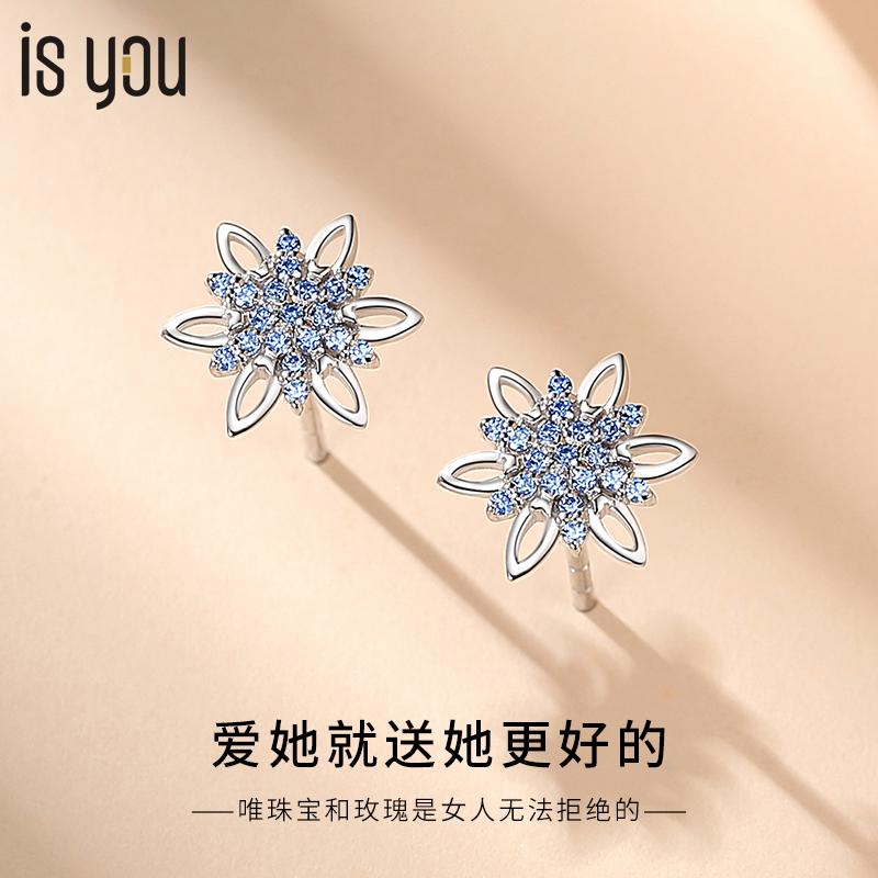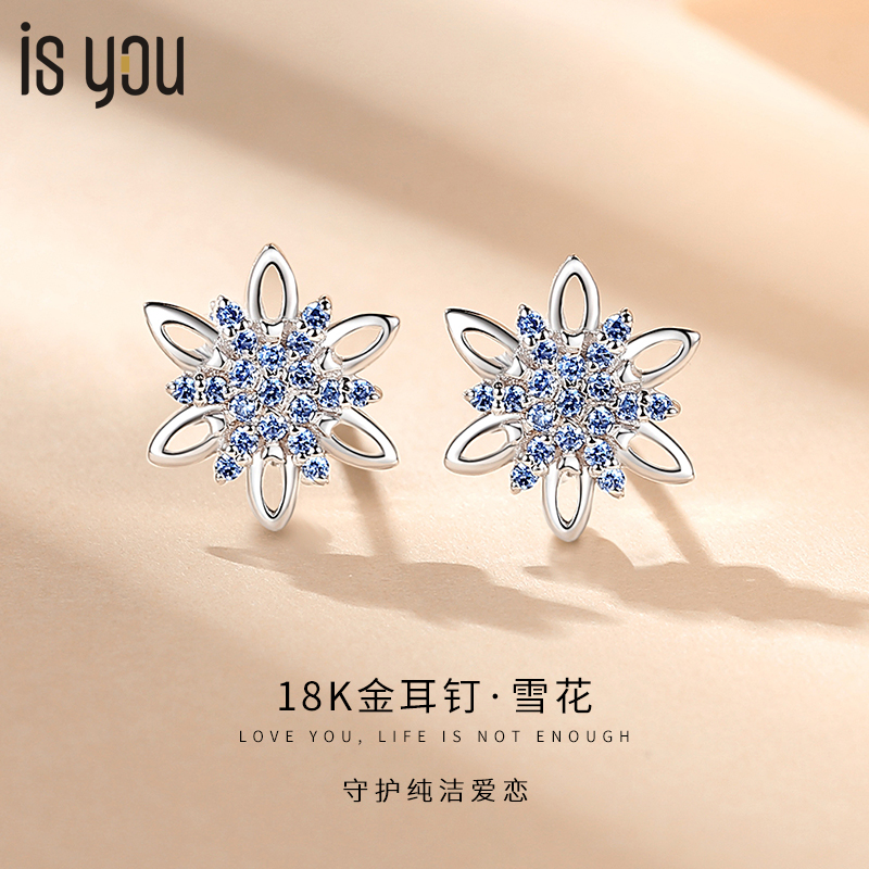 18K platinum snowflake earrings female niche earrings high-grade light luxury earrings birthday Christmas gift for girls