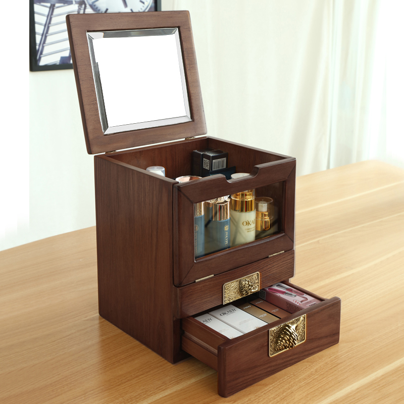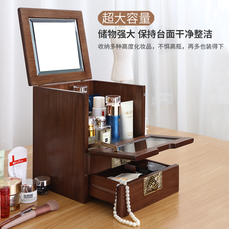 Cosmetics storage box solid wood drawer desktop rack skin care products lipstick desktop wooden makeup table box