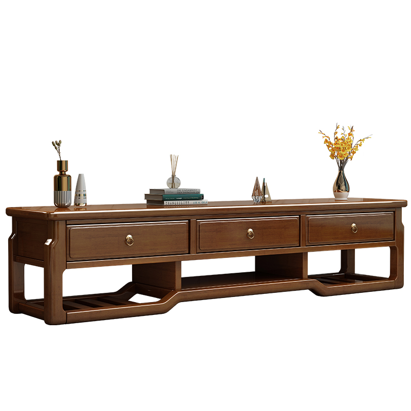 Chinese style minimalist small household type solid wood tea table combined TV cabinet Living room Practical ground cabinet modern 2 m with drawer