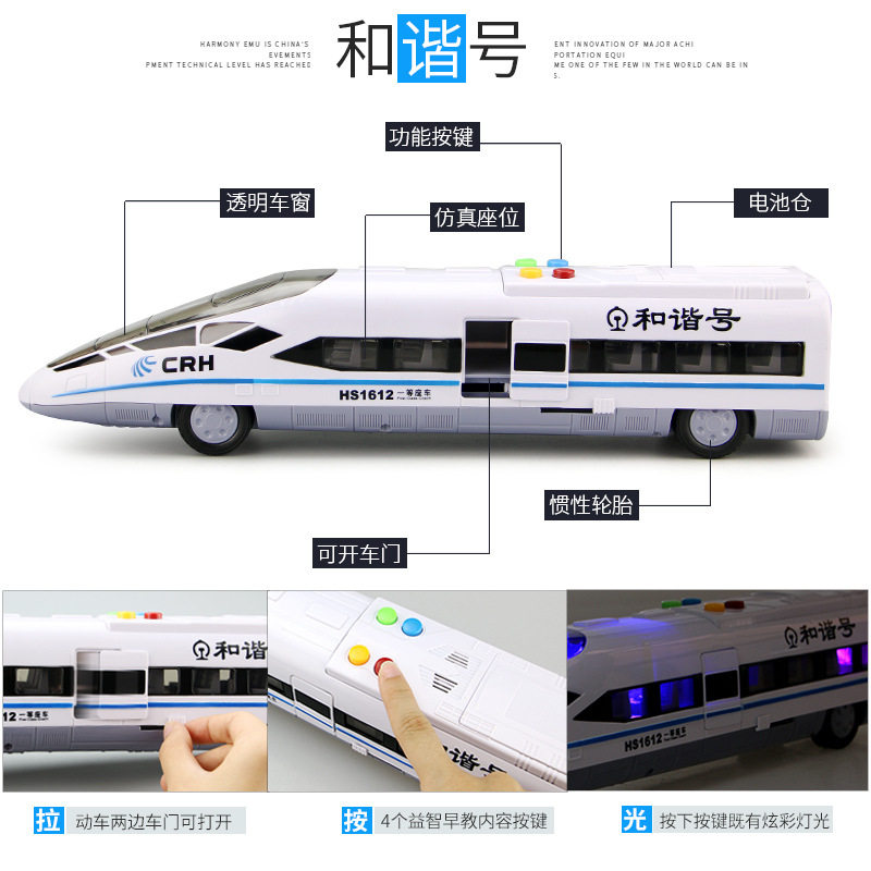 Children Early Education Puzzle Light Music Stories Harmony Number high-speed train model 2-year-old 3-year-old Inertial Force Return Toy