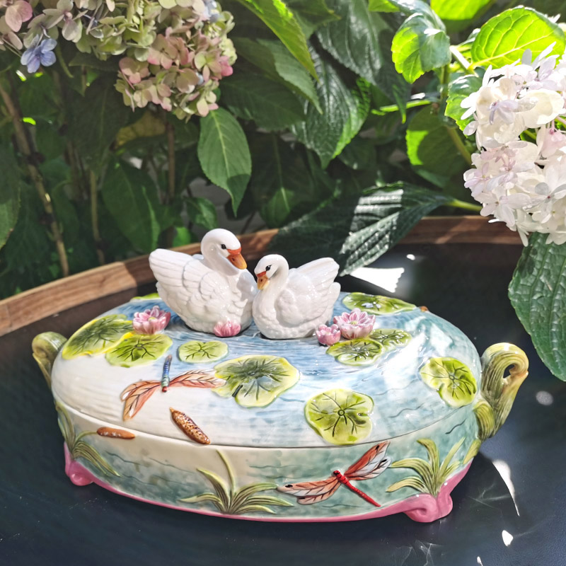 Ceramic Delight Box Swan Cookies Jar White Goose candy Box Swan Lake Snack Box Newlyweds for Practical Gift