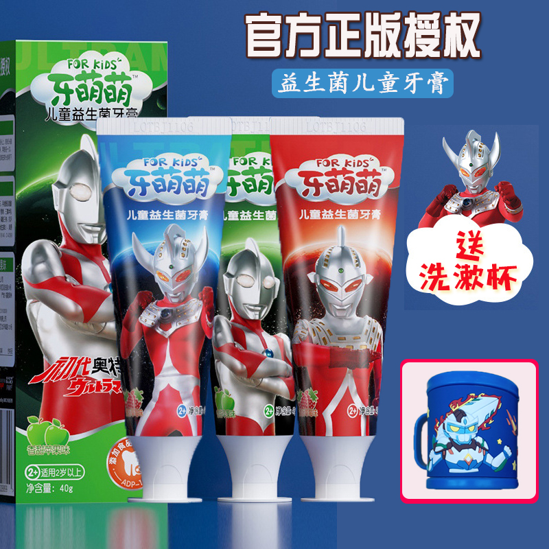 Genuine authorized Ultraman Cartoon food grade toothpaste Original Tyro Severin 2-6-12 years old probiotics 40 grams