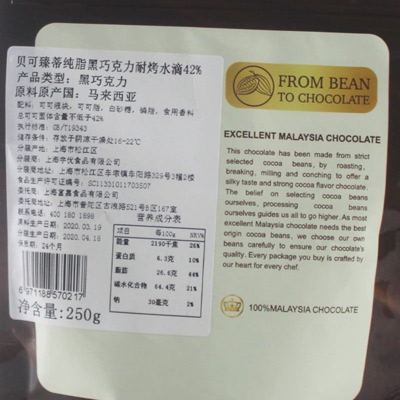 Bergechenti high temperature resistant dark chocolate beans 250g resistant to baked beans pure cocoa butter cookie 42% baking
