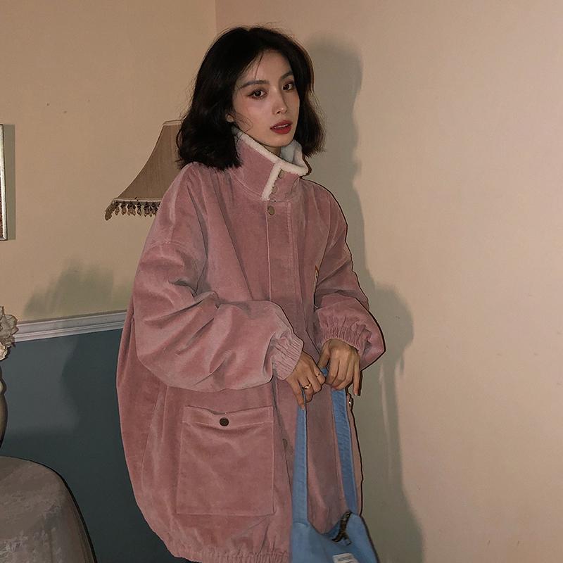 Pink Light Core Suede Cotton Clothing Women 2020 Winter New Loose Retro Plus Suede Thickened Warm Cotton Clothing Coats-in-Chains