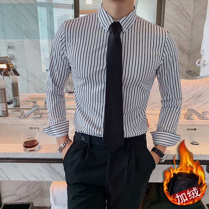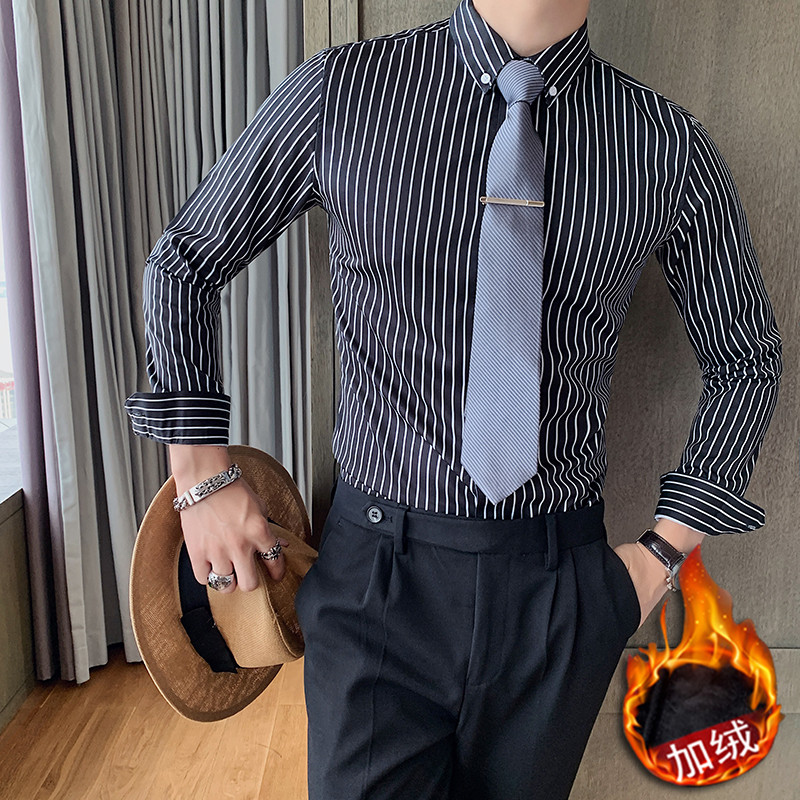 Spring and Autumn Men Strip Long-sleeved Shirt Han Edition to British Fairy Shirt Men's Hanghai Shirt