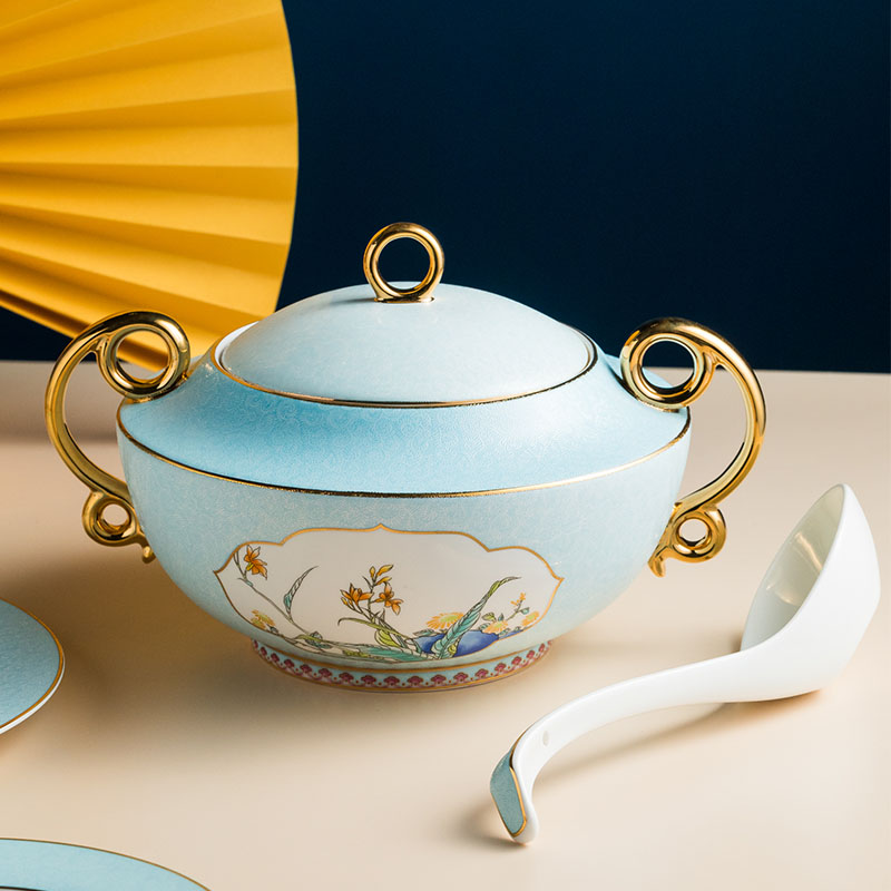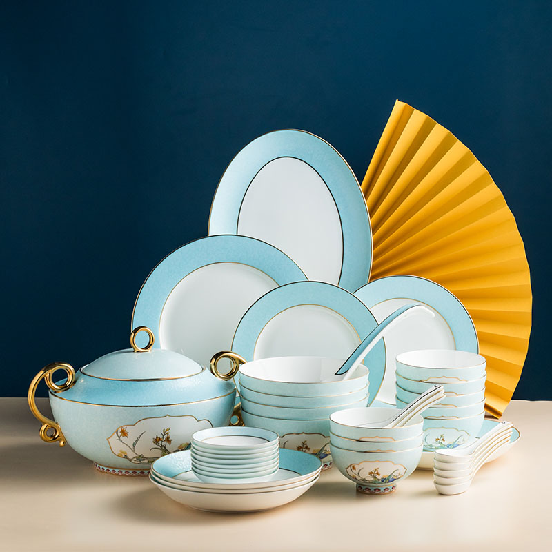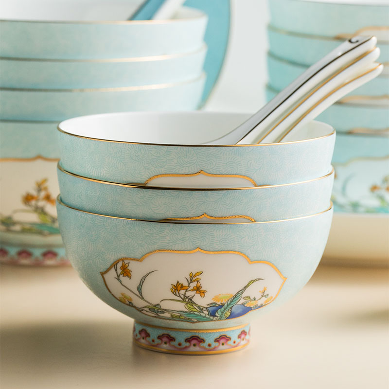 Songfa 38 head Jindi Yerba Buena court enamel bone china set porcelain bowl plate home gift dinner bowl