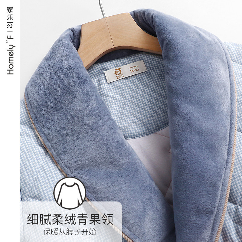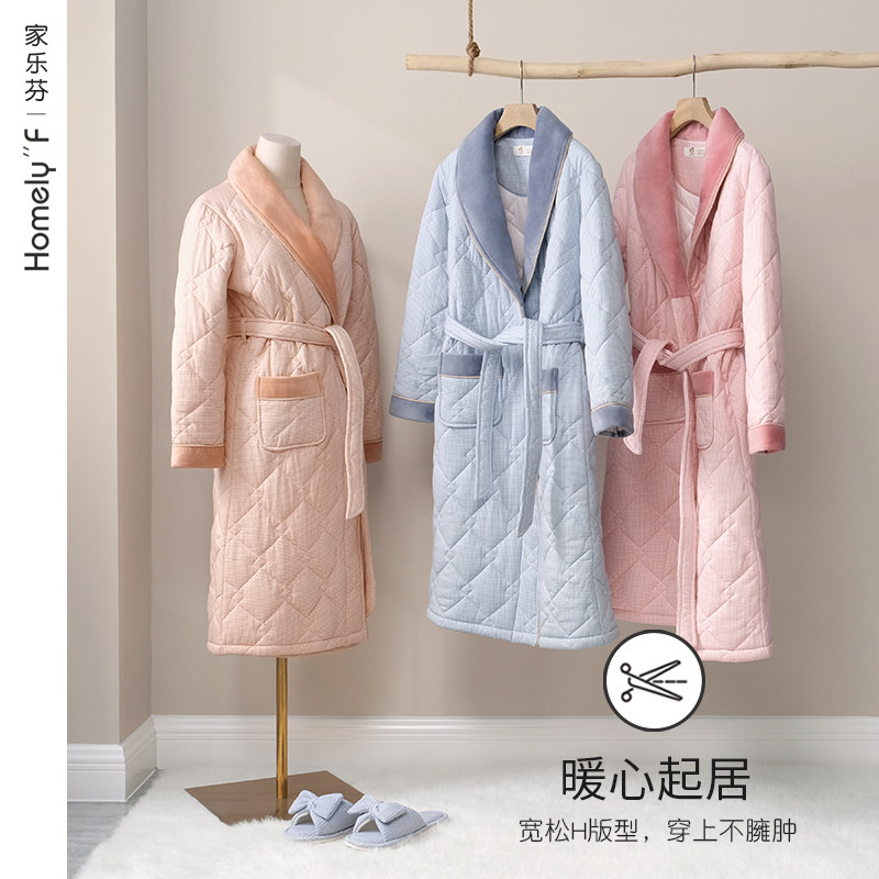 Clip Cotton Sleeping Robe Lady Autumn Winter Pure Cotton Triple Layer Thickened Warm Full Cotton Medium Long Version Bathrobe Pyjamas women's home clothes