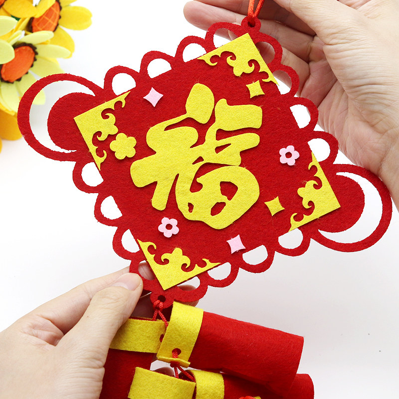New Year's Day Artisanal Diy Kindergarten New Year Gifts Firecrackers for Spring Festival Hanging Decorations for Children's Festival Making Material Package