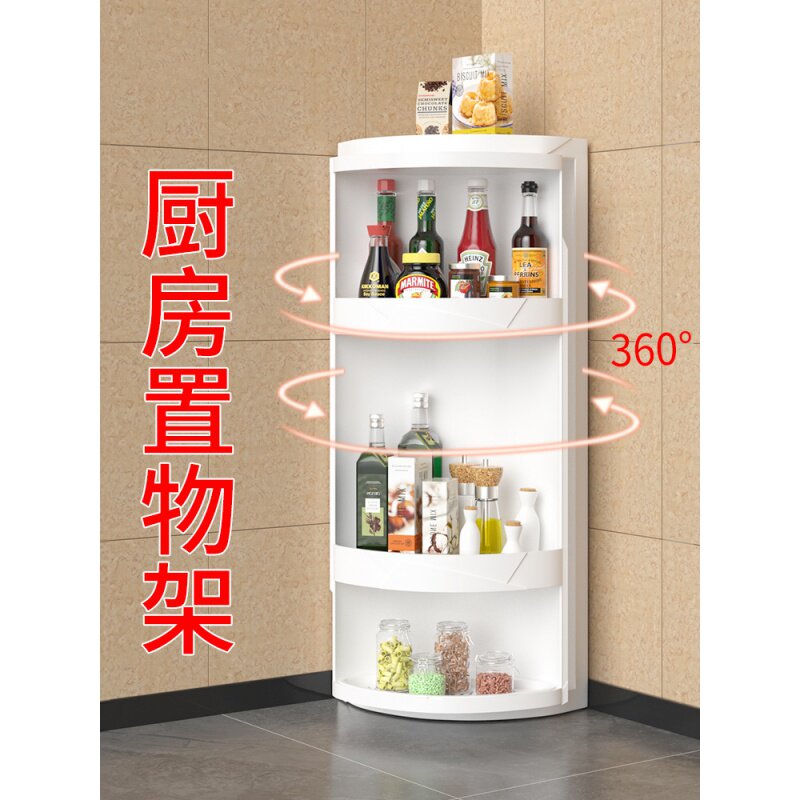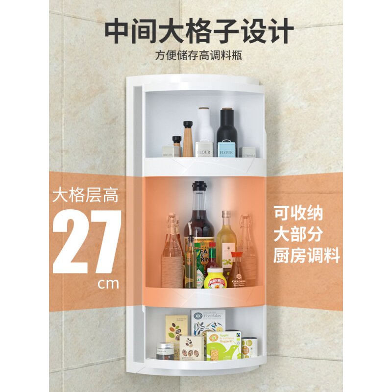 Kitchen shelf Seasoning countertop Wall-mounted triangular rotating storage shelf Artifact Condiment special storage corner cabinet