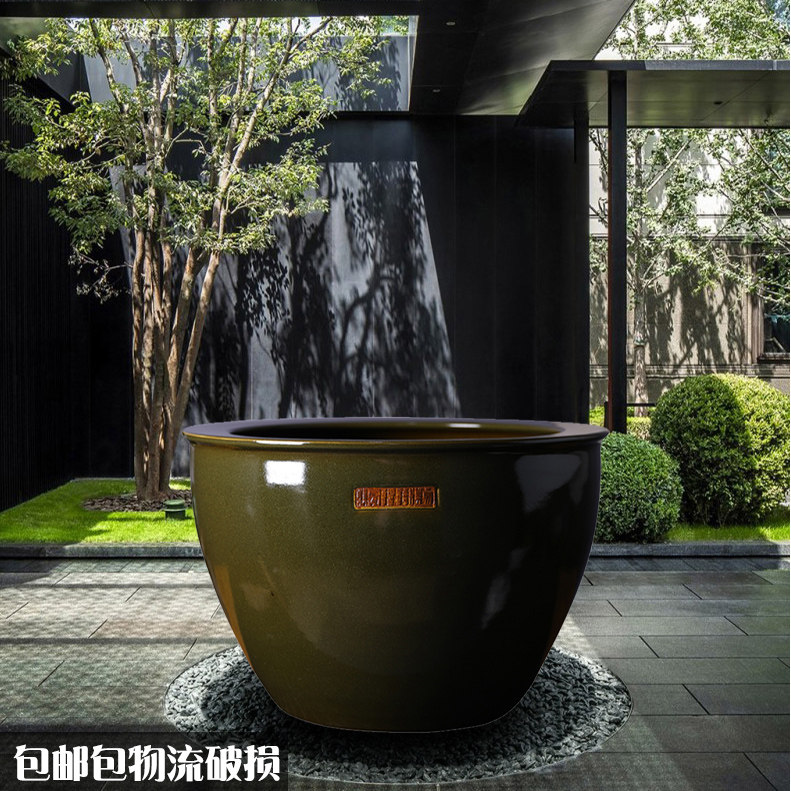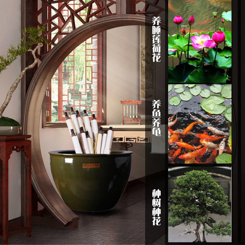 Jingdezhen Antique Ceramic Fish Bowl Koi cylinder Chinese Living Room Book Cylinder Courtyard Large Water Cell Fish Tree