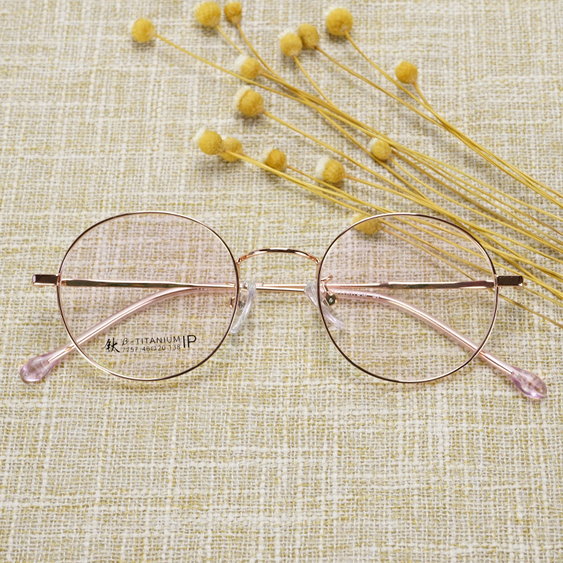 New pure titanium eye frame female height myopia glasses female super light small face can be matched with small frames retro round