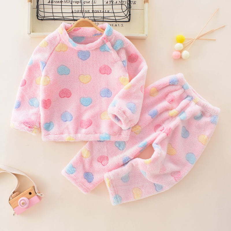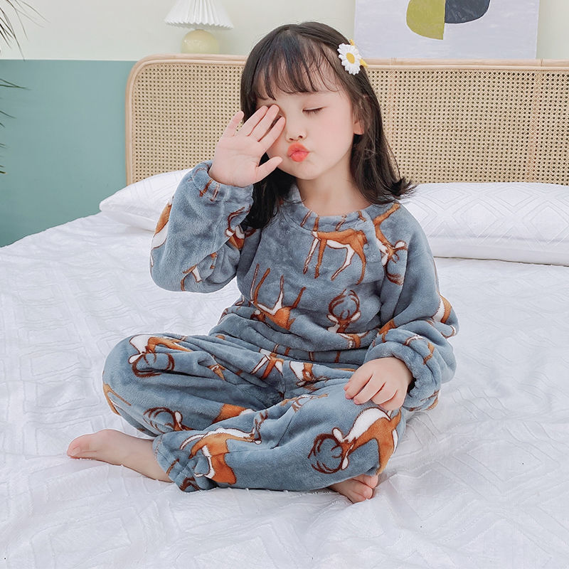 Children's Clothing Children Pajamas Girl Coral Suede Suit Female Baby Flannel Two Sets Boy Autumn Winter Home Clothing