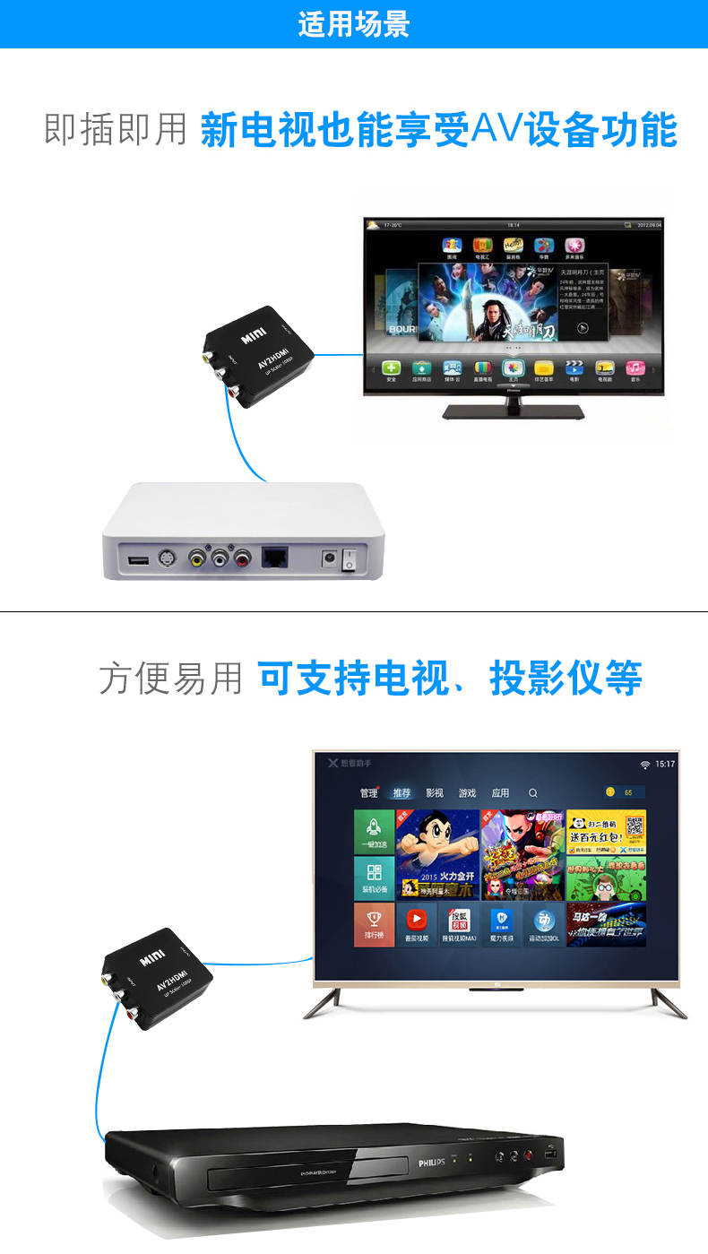 AV to HDMI converter AV to HD RCA analog set top box connected to old TV monitor three color line to 1080Pdvd dance carpet game machine video adapter cvbs little Overlord