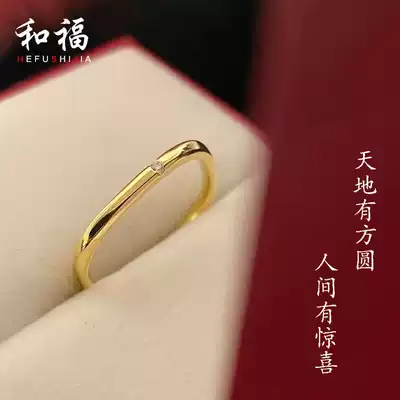 Small square ring fashion personality couple square ring female plain ring 925 silver plated 18k gold shaking little red book the same style