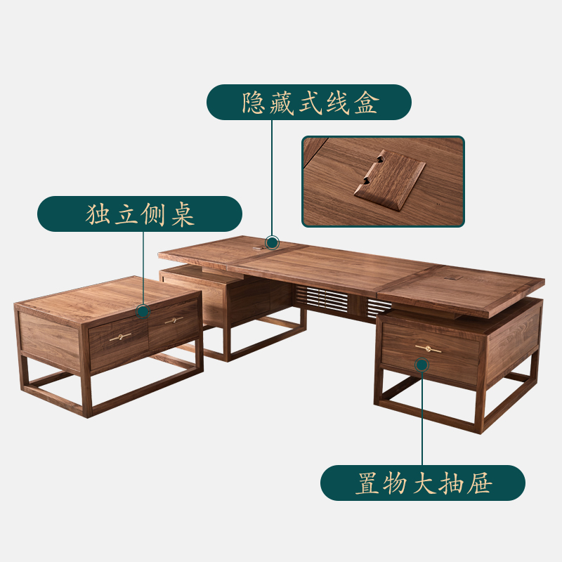 New Chinese Black Walnuts Wood Color Solid Wood Desk Boss Table Big Bandae President Table Chairs Combined Office Furniture