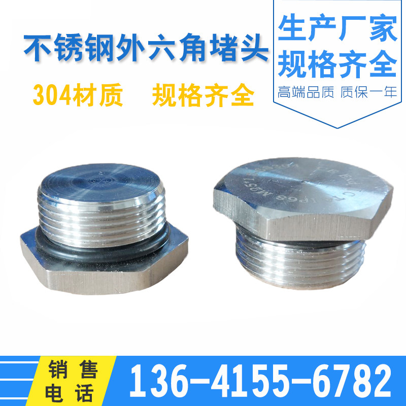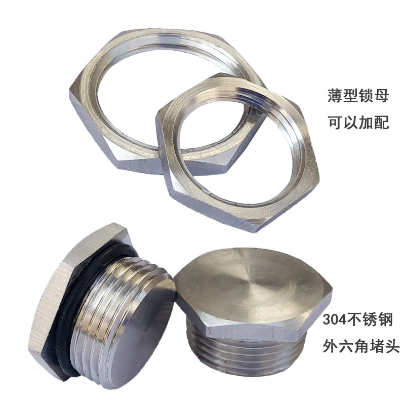 304 stainless steel choke plug Outer hexagonal stuffy cover plugging M20G1 2NPT3 4 metal waterproof explosion proof sealing choke plug