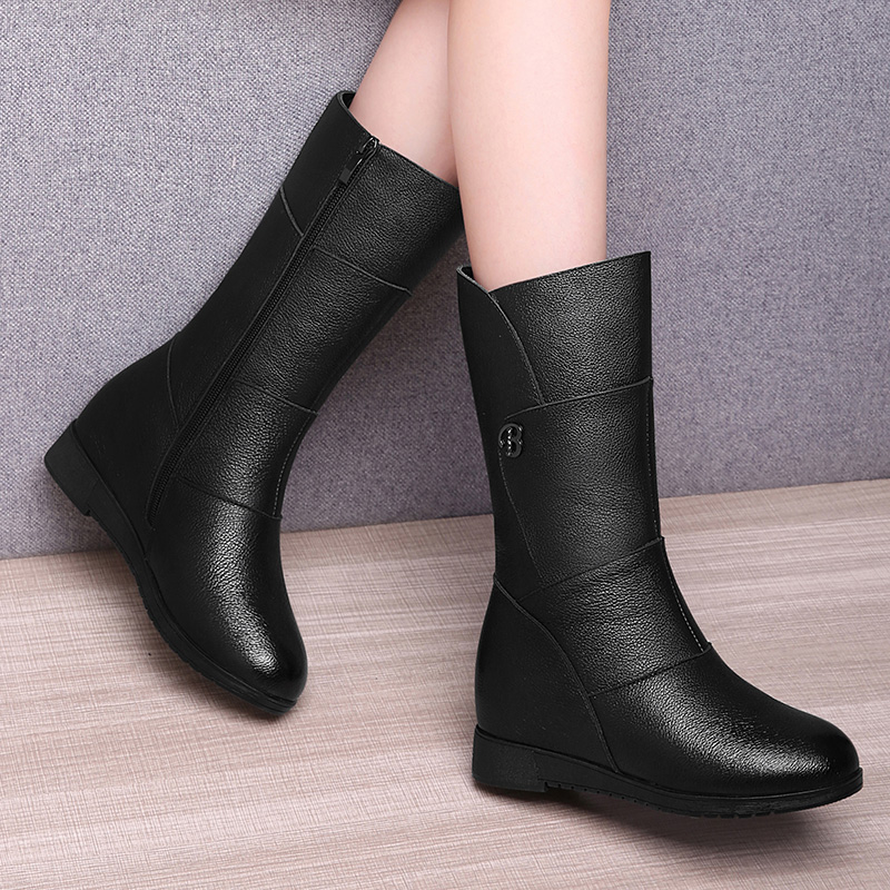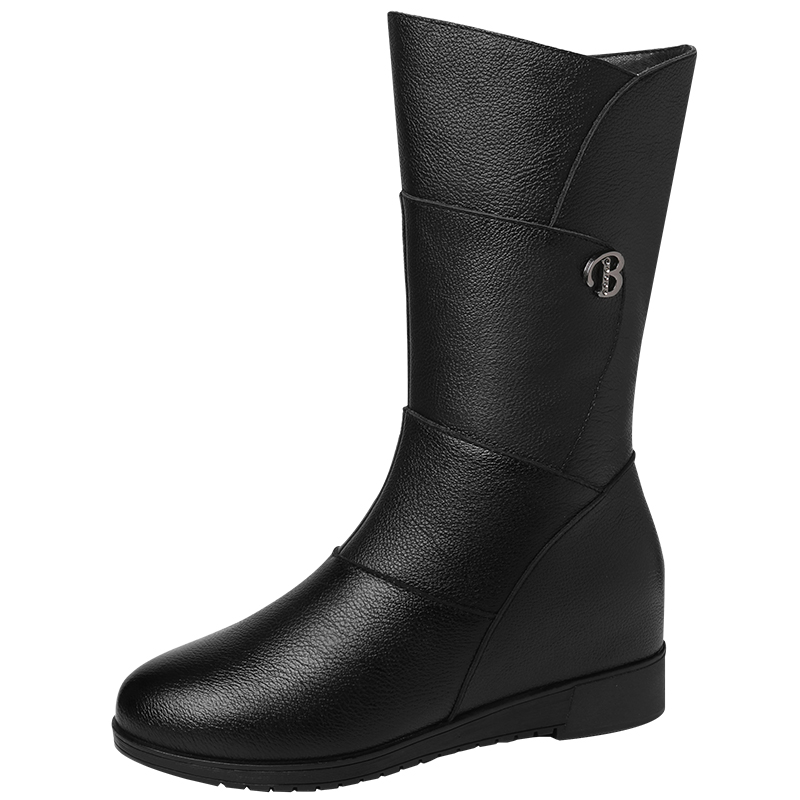 Rich bird women's shoes mother boots women's thickened mid-boots winter cotton shoes middle-aged plus velvet inner heightened leather short boots