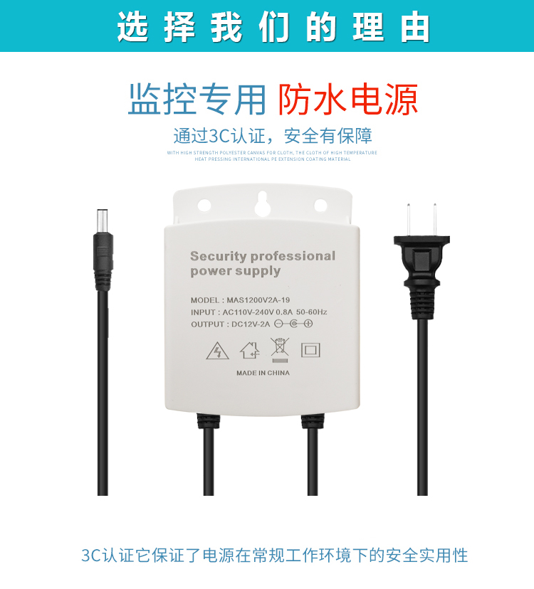 Outdoor waterproof monitoring power supply camera adapter security camera outdoor rainproof transformer 12V2A