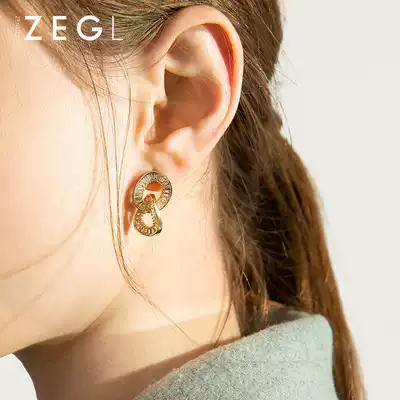 ZEGL ring buckle earrings female light luxury niche temperament ear needle simple cold wind 925 silver needle Net red ear ornaments