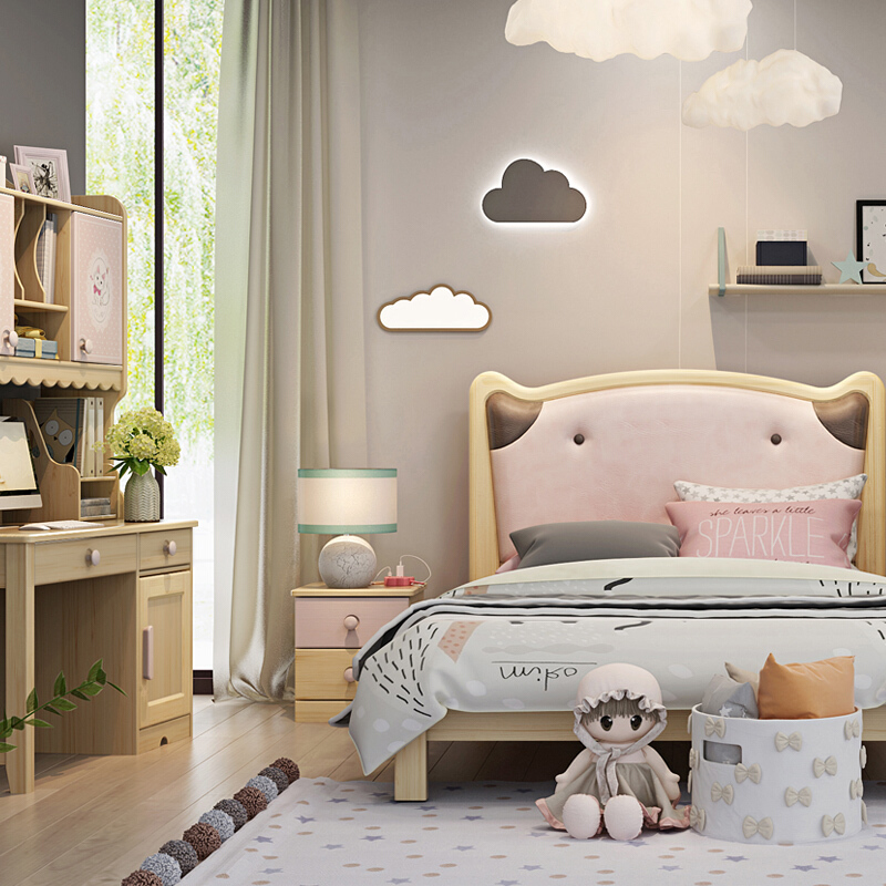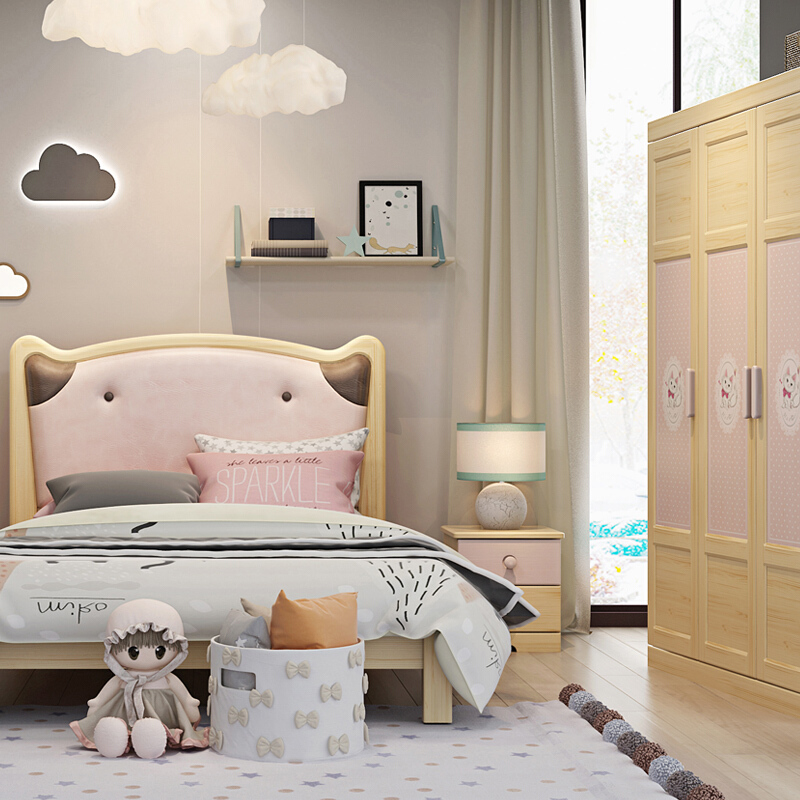 ABC Professional Growth Teenager Solid Wood Children's Bed Classic Log Series Cute Cat Coaxing Baby Artifact