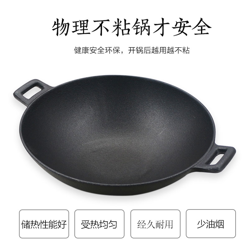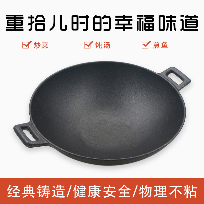 Thickened old cast iron pan large number frying pan special double earthen iron pan large pan flat bottom pan frying pan home