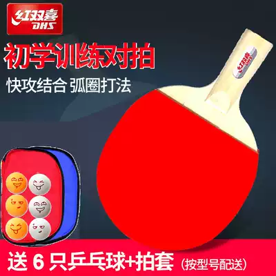 Red double happiness table tennis racket 4-star horizontal single and double shot children's students beginner table tennis three and four-star professional hurricane