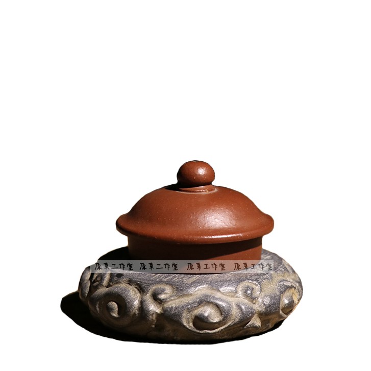 Original Letching stone engraving Xiaoxiang Cloud stone drum base cup cushion cover pot bearing new Chinese ancient and simple antique tea mat pendulum piece