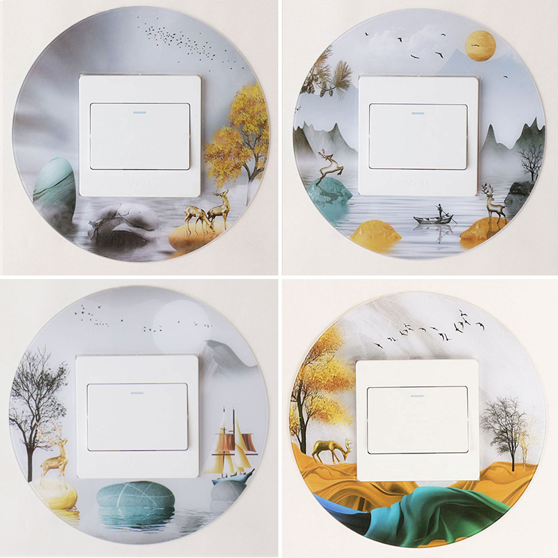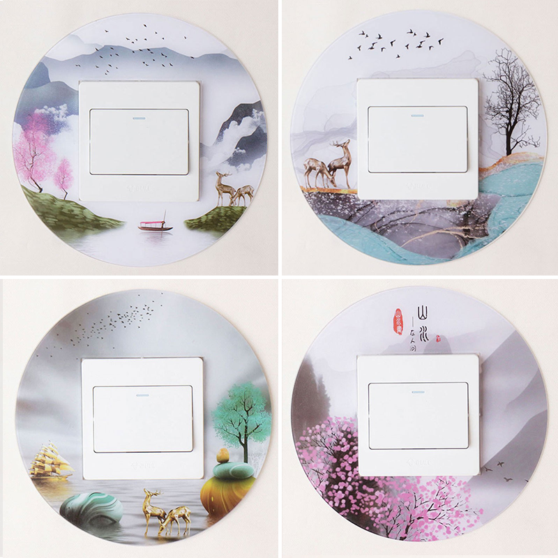 4 clothes switch modern Chinese acrylic wall protective sleeve round switch with national wind socket sticking to the lotus