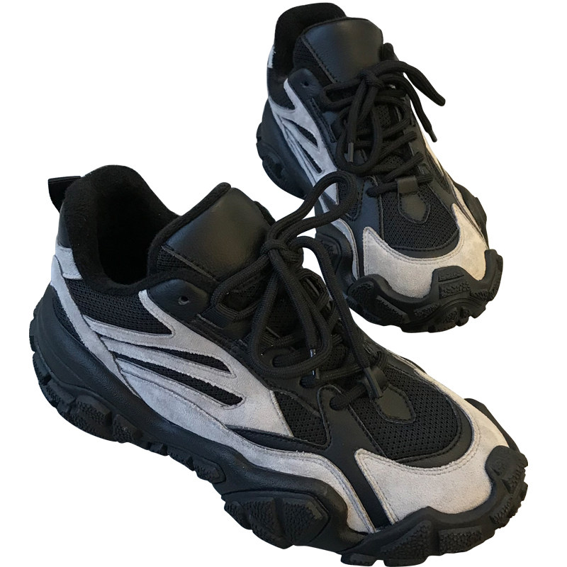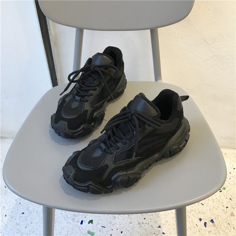 South Korean boomer 2021 new old daddy shoes women's ins with a small thick bottom heightening 100 lap lace casual sneakers