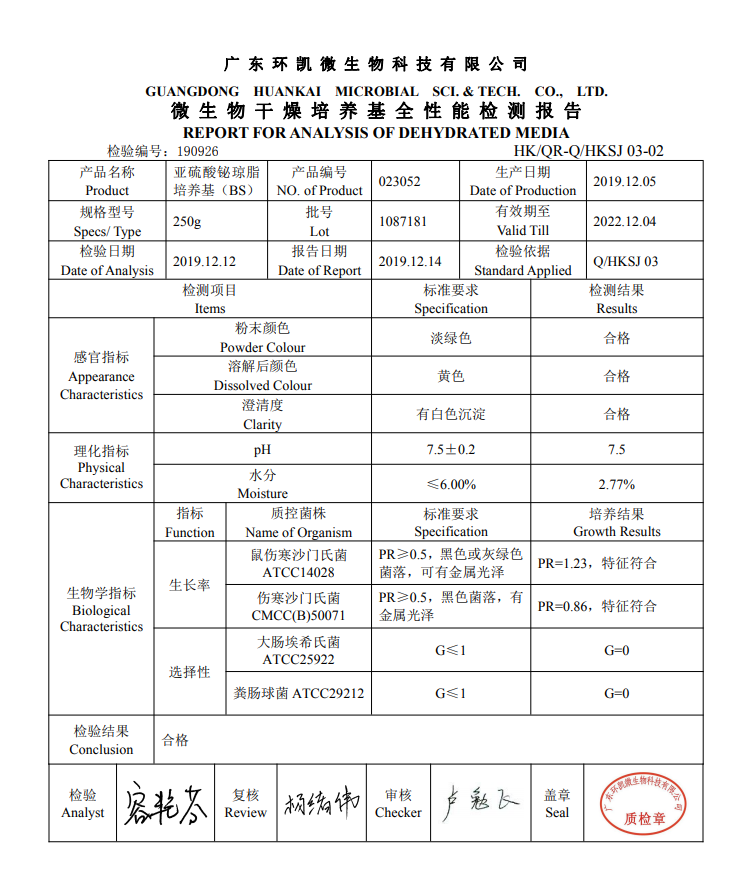 Bismuth sulfite BS agar BR250g dry powder medium Guangdong Huankai 023052