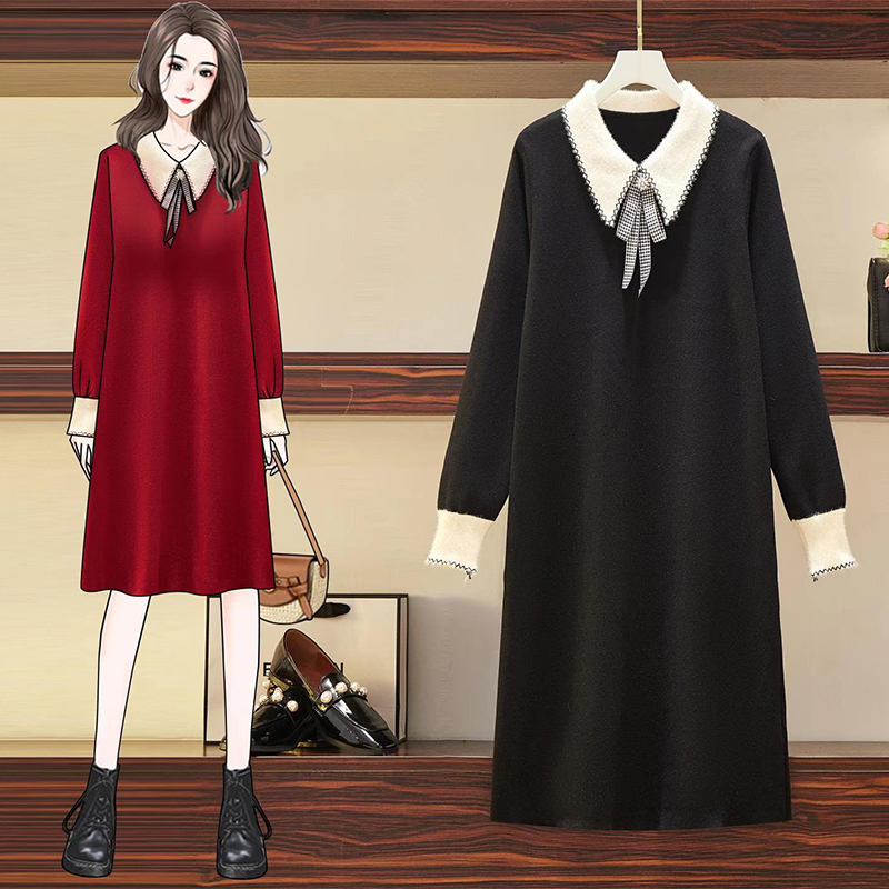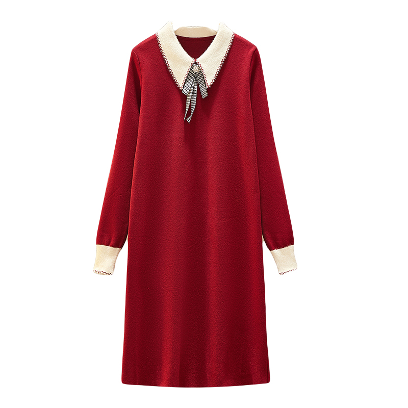 Pregnancy Woman Dress Autumn Winter Style Foreign Dress 2022 New Year Winter New Spring Dress Grand Scale Code Chinese Red Knit Sweater Dress